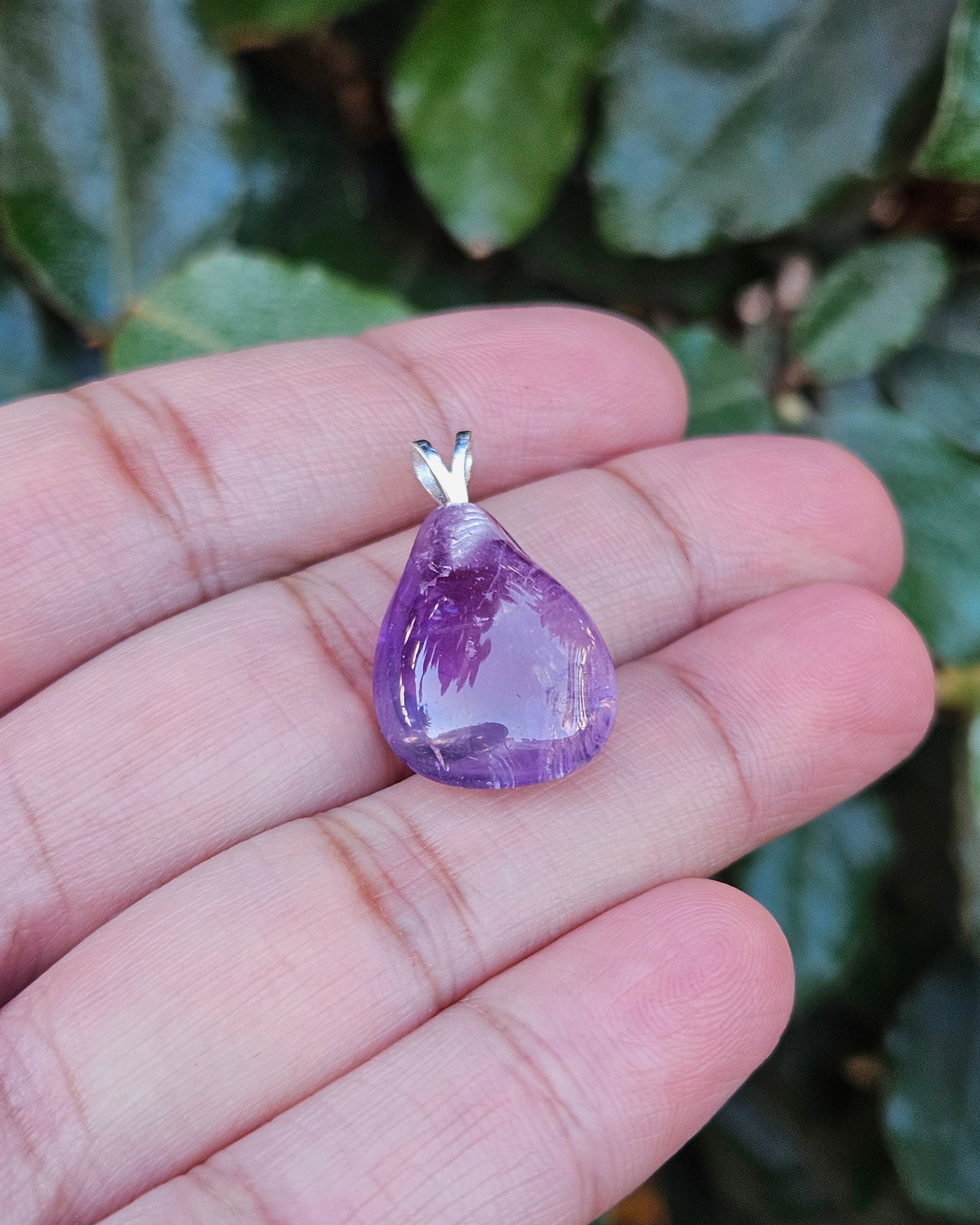 This free-form amethyst pendant exudes peace and serenity. It comes ready to wear with an elegant silver eyelet. Amethyst is known to promote relaxation, soothe negative thoughts, and promote inner balance. Ideal to keep close during busy times.