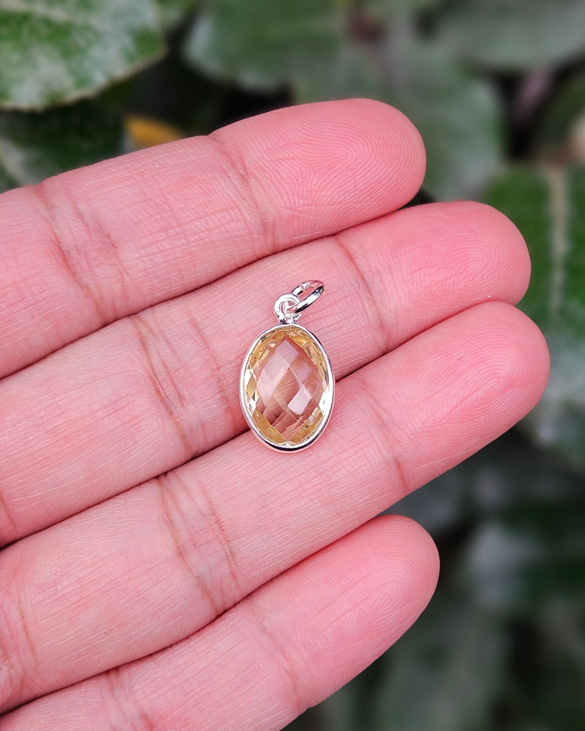 This faceted oval citrine pendant with a simple silver border exudes warmth, positivity, and refinement. The facets allow the light to dance beautifully in the stone's honey-gold tones, while the silver frame adds a subtle elegance—timeless and stylish at the same time.