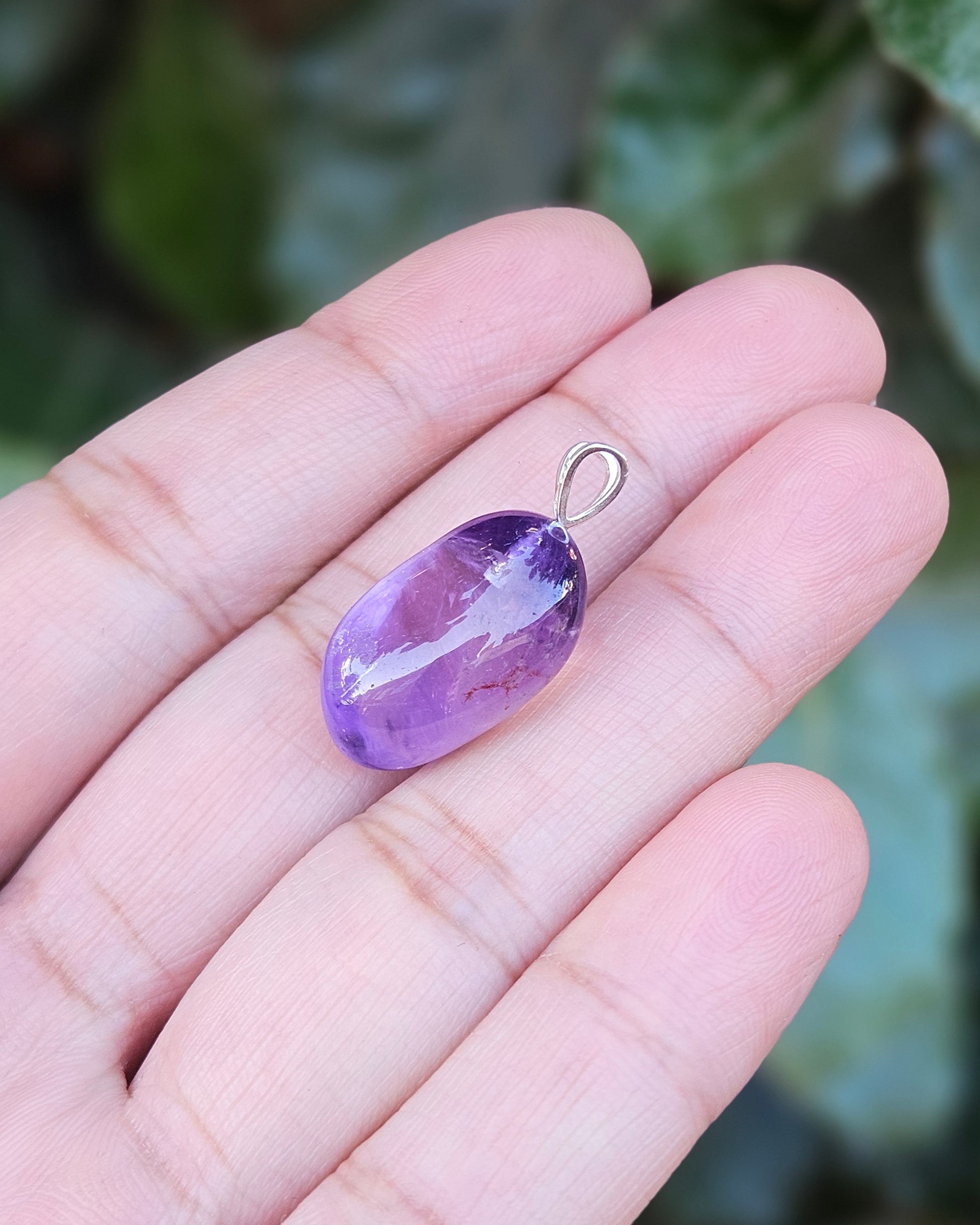 Each free-form amethyst pendant is a unique piece of nature, finished with a silver eyelet. Amethyst is known for its protective properties: it purifies energy, helps ward off negative influences, and brings clarity to thoughts. A valuable talisman for everyday use.